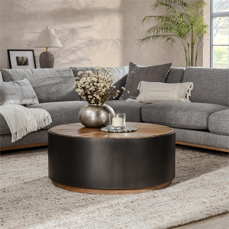 Kosas Home Salsbury Wood and Metal Coffee Table in Dark Brown and Black Very well made.