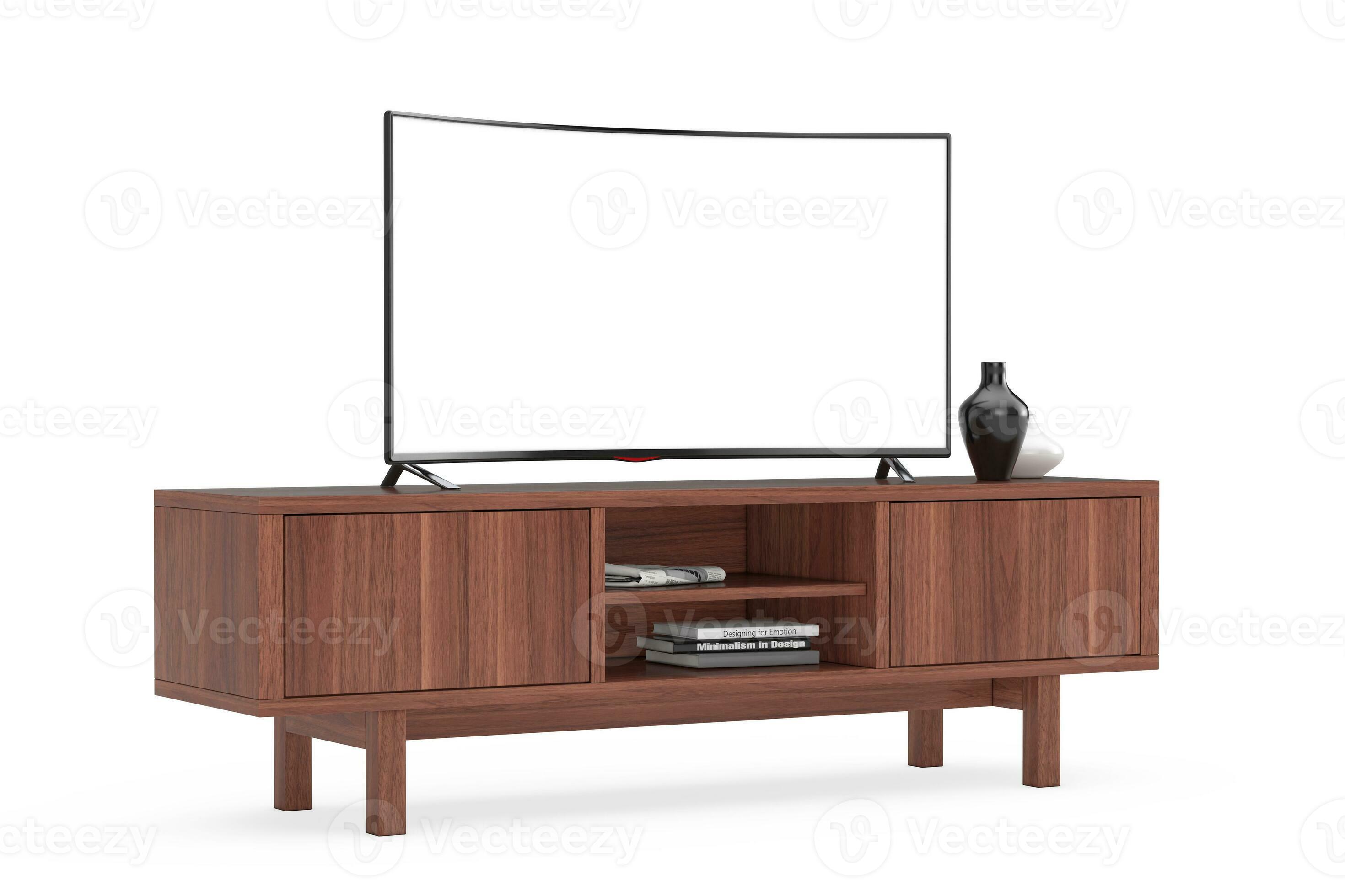 Modern Curved Led or LCD Smart TV Screen Mockup above Wooden Console Rack. 3d Rendering 35130002 Stock Photo at Vecteezy Very well made.