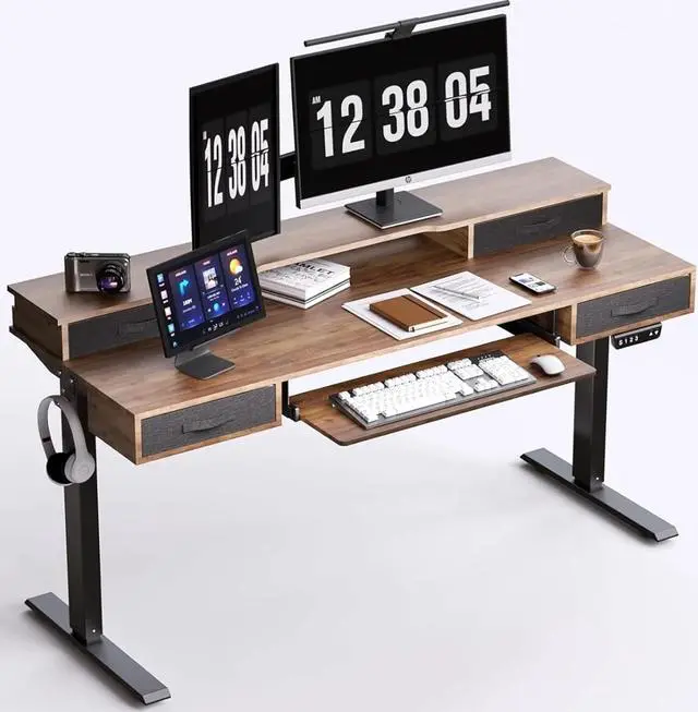 Marsail Standing Desk Adjustable Height with Extra Large Keyboard Tray Electic Adjustable Desk with 4 Memory Presets Cable Management 2 Storage Very well made.