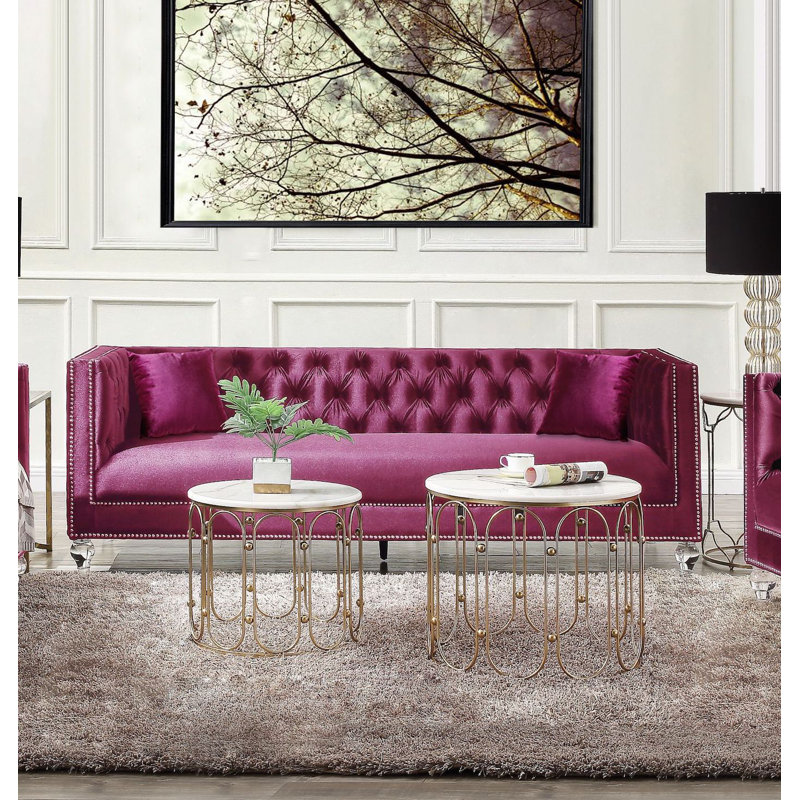 Everly Quinn Hessville Sofa 57.8 Velvet Round Arm Loveseat Mercer41 Fabric Eggplant Velvet Very well made.