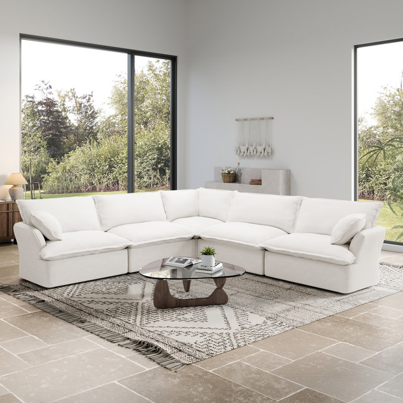 120 Sectional Sofa Comfy Cloud Couch for Living Room Modern Sofa Sleeper Deep Couches with Ottoman Latitude Run Fabric Cream White Chenille Very well made.