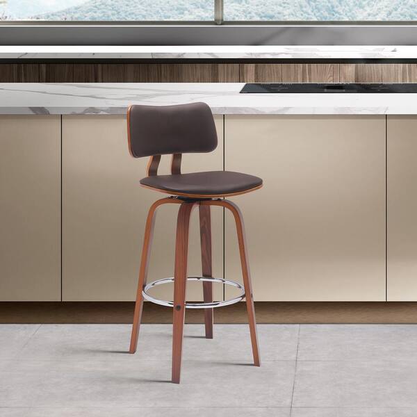 26 H Swivel Counter Stool with Tufed Back and Wood Legs Retro Upholstered Barstools with Nailhead Trim Dark Brown Faux Leather Seat 2pcs Very well made.