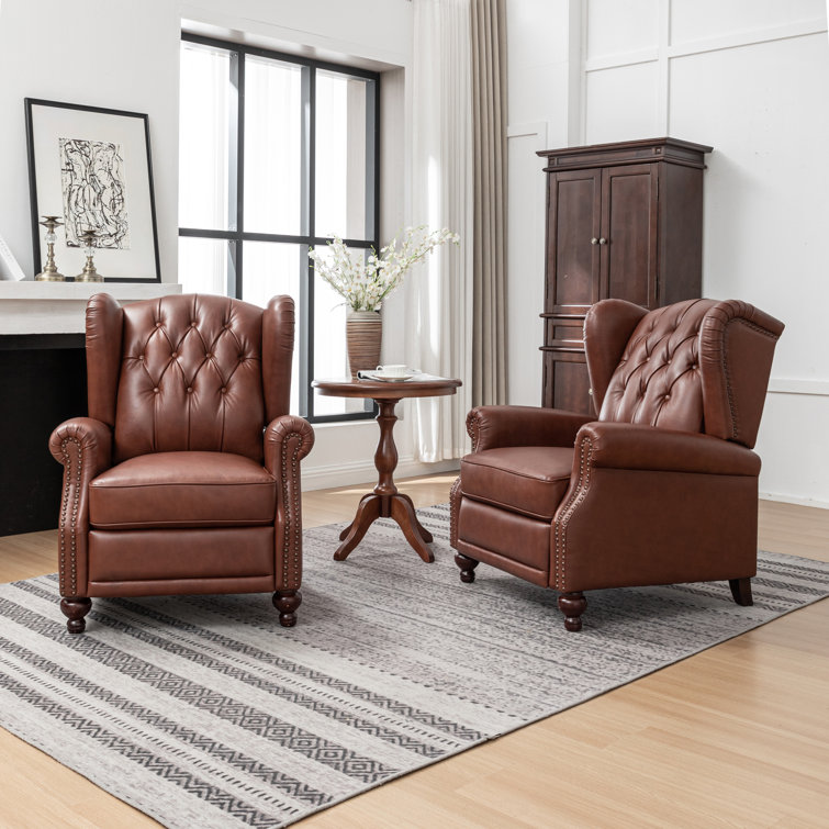 Aimee Lea Leather Recliner Set of 2 Lark Manor Leather Type Light Blue Genuine Leather Very well made.