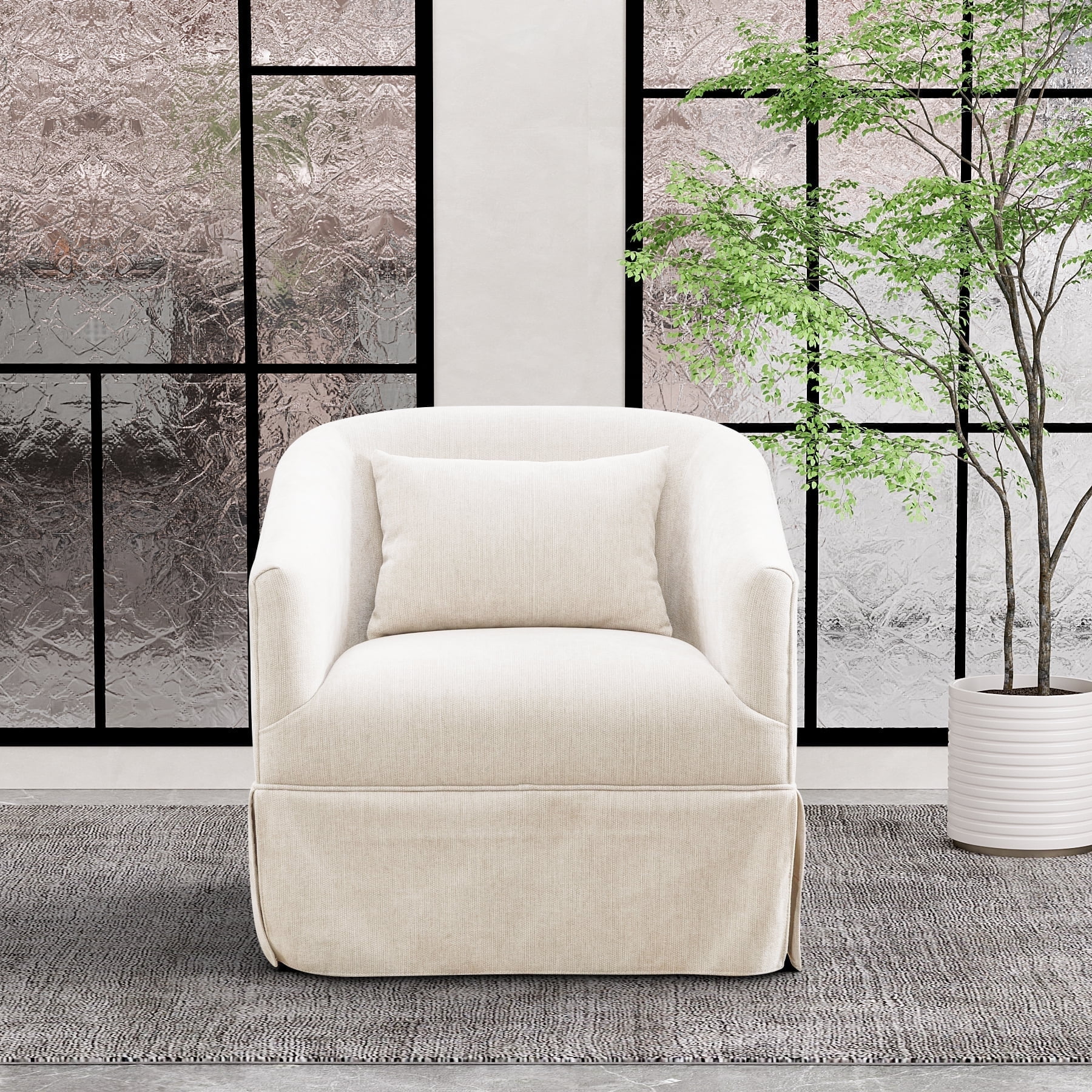Ouyessir Upholstered Swivel Barrel Chair Modern Accent Chair with Lumbar Pillow Comfy Linen Fabric 360 Degree Swivel Club Chair Armchair for Very well made.