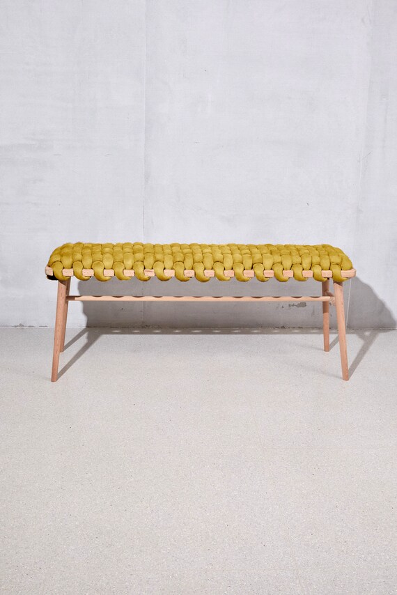 Woven Bench in Desert Yellow Vegan Suede Wooden Bench Entrance Bench Bedroom Bench Velvet Bench Etsy Very well made.