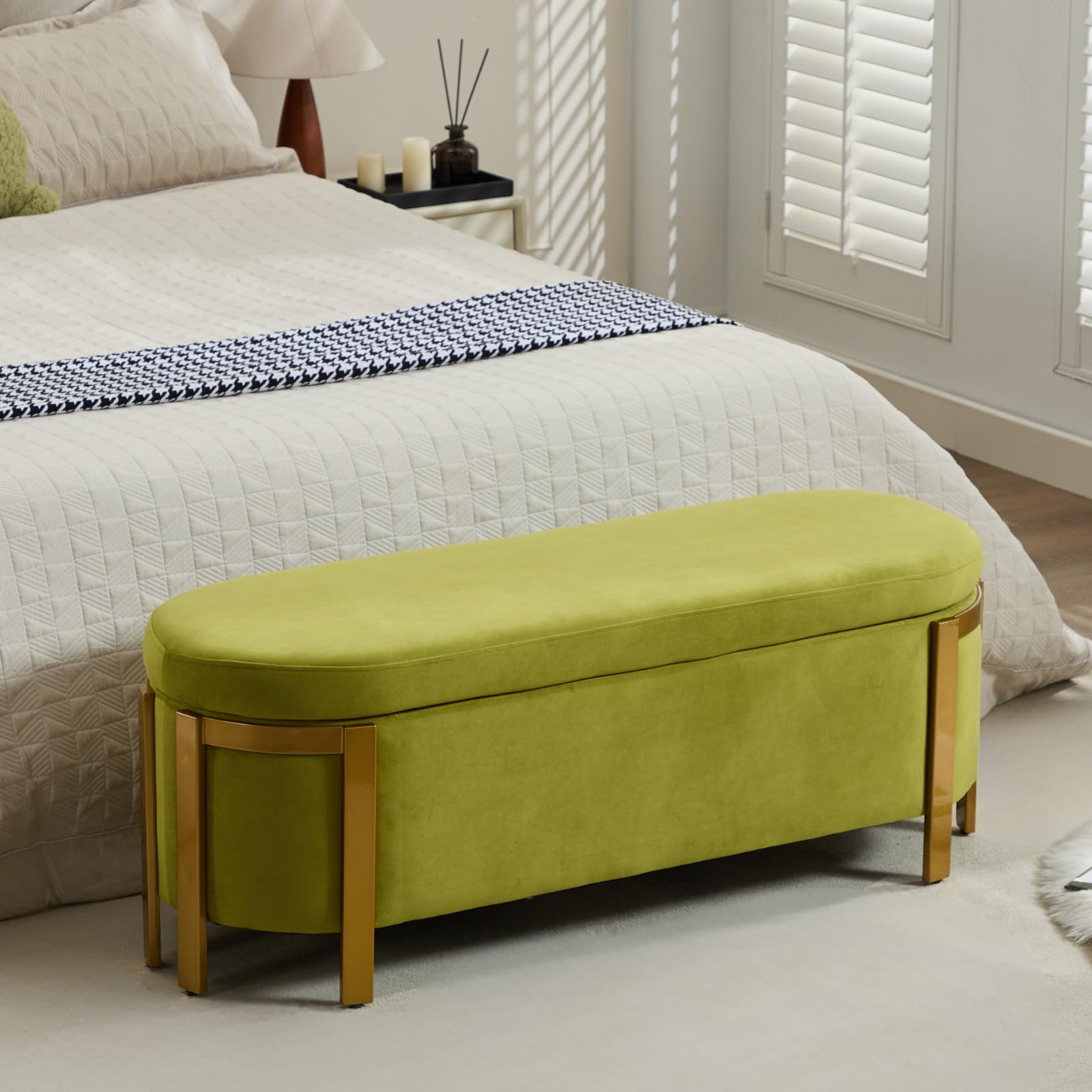 ZH4YOU 48 Storage Bench Ottoman Upholstered Chenille End of Bed 5001 Velvet Oliver Green Very well made.