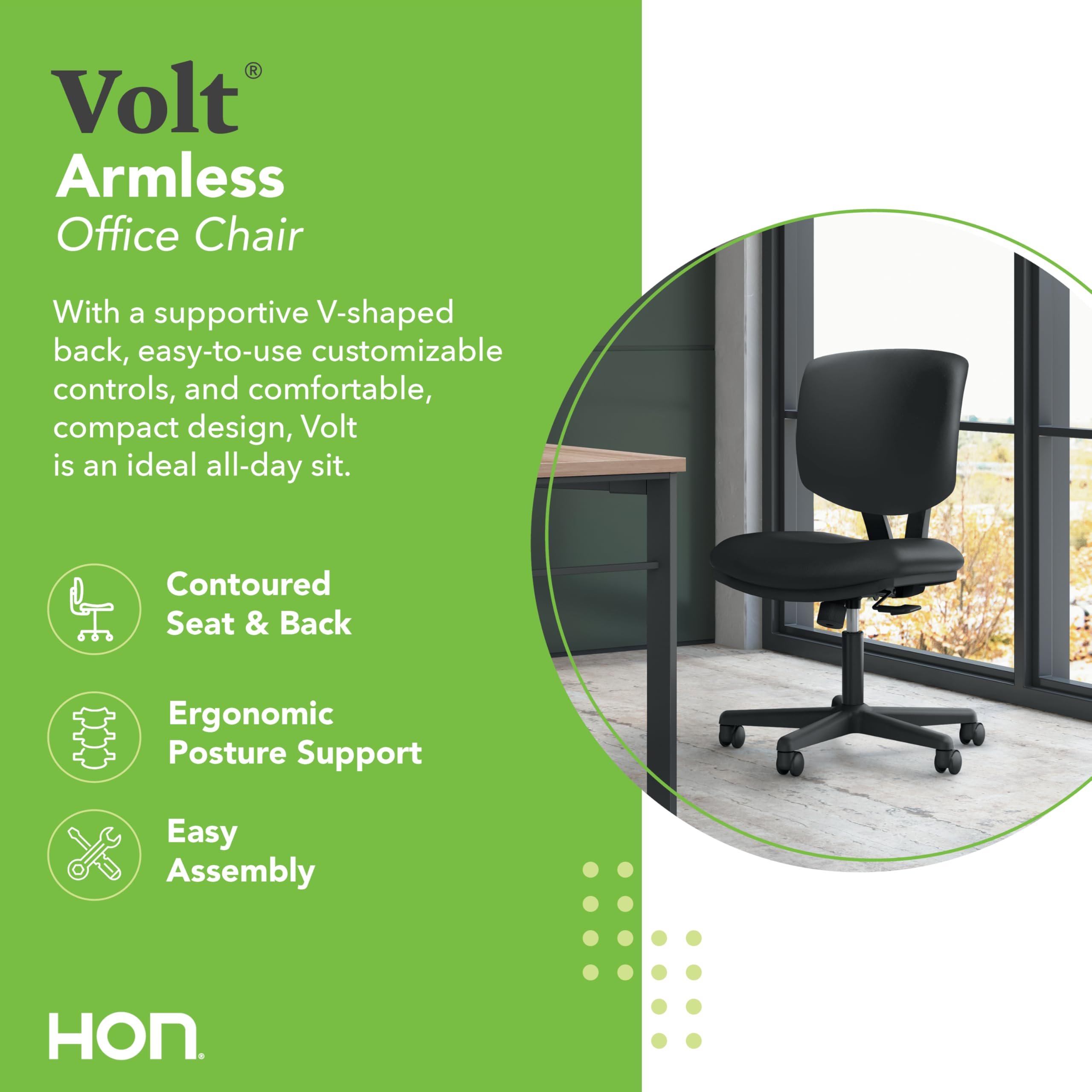 Amazon HON Volt Armless Chair Home Desk Chairs with Wheels Leather Seat and Back Ergonomic Recline and Synchro Tilt Black Home Kitchen Very well made.