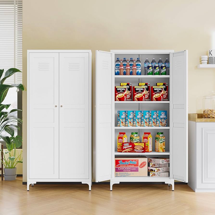 Kitchen Pantry Storage Cabinet Metal Kitchen Storage Cabinet with 2 Doors and Adjustable Shelves Pantry Cabinet for Dining Room Living Room Laundry Very well made.