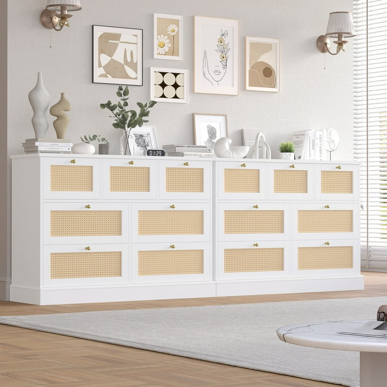 Homfa Rattan Dresser White 7 Drawer Combo Double Dresser Modern Wicker Chest for Bedroom Adult Unisex Size 31.4 H x 43.3 W x 15.7 D Very well made.