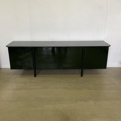 Green Lacquered Wood Sideboard with Metal Feet Frame Smoked Glass Top 1970s for sale at Pamono Very well made.