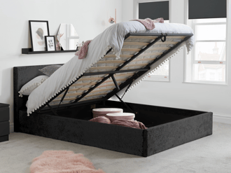 Grey Velvet Small Double Ottoman Bed with Diamante Headboard Safina Furniture123 Very well made.