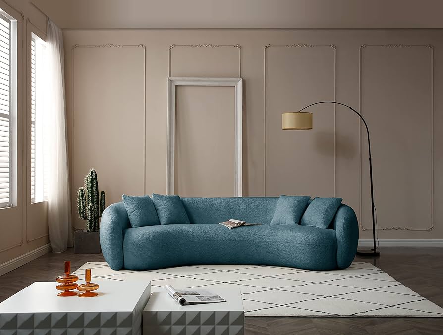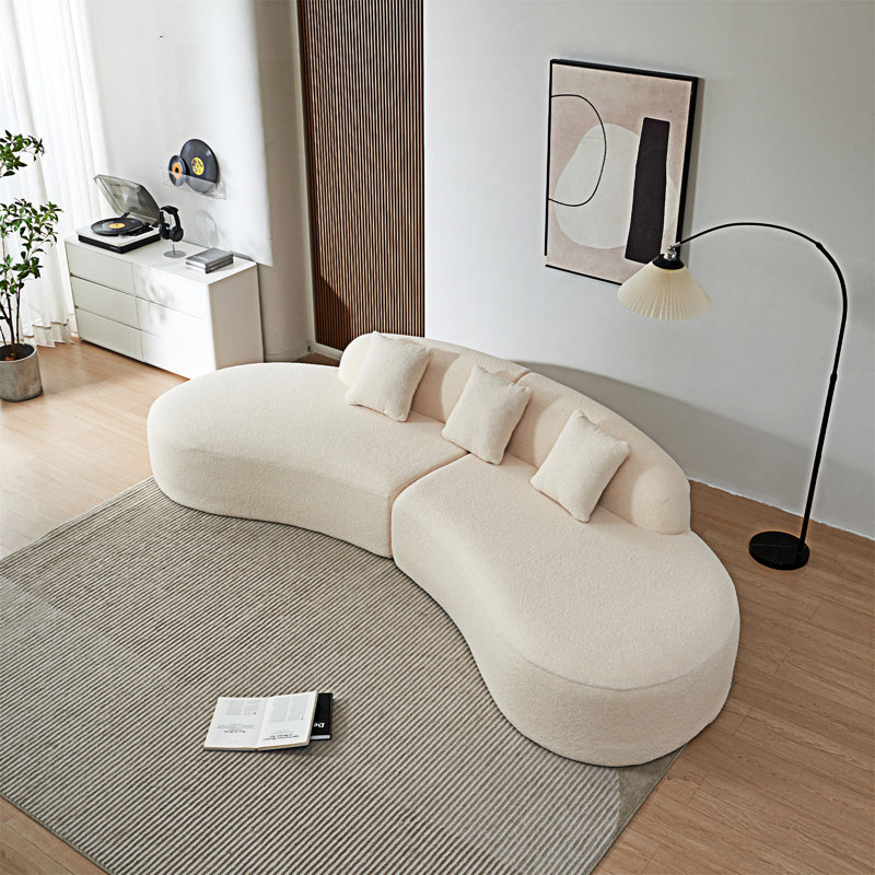 Minimalist Curved Sofa Set Mid Century 5 Seat Teddy Fleece Boucle Couch with 4 Throw Pillows Oversized Cloud Sofa Couches Decor Furniture for Very well made.