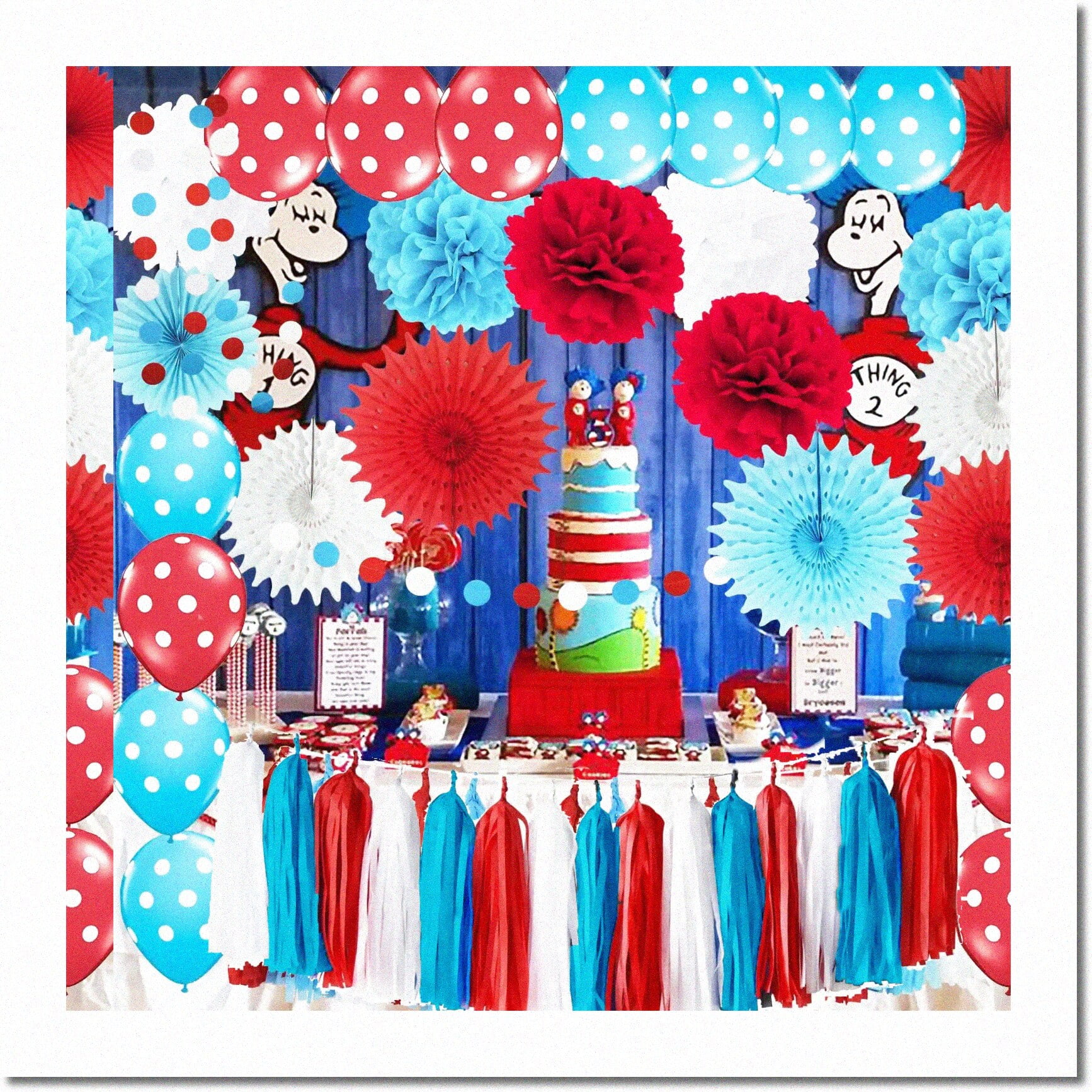 Seuss tastic Celebration Kit Baby Shower Birthday Decorations with Thing 1 Thing 2 Turquoise White Red Polka Dot Balloons. Walmart Very well made.