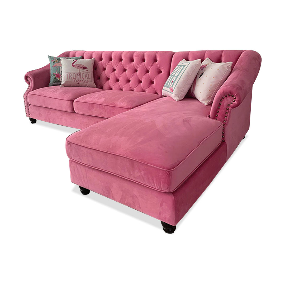 Pink Fabric Right Facing Sectional Sofa Bedl Shape Sofa Chaise Lounge Very well made.