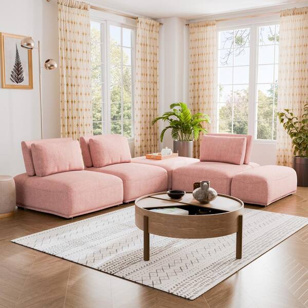 Pink Oversized Sleeper Sectional Sofa with 5 Throw Pillows L Shape Left Hand Facing Couch 3 Seater Boucle Fabric Sofa Chaise Very well made.