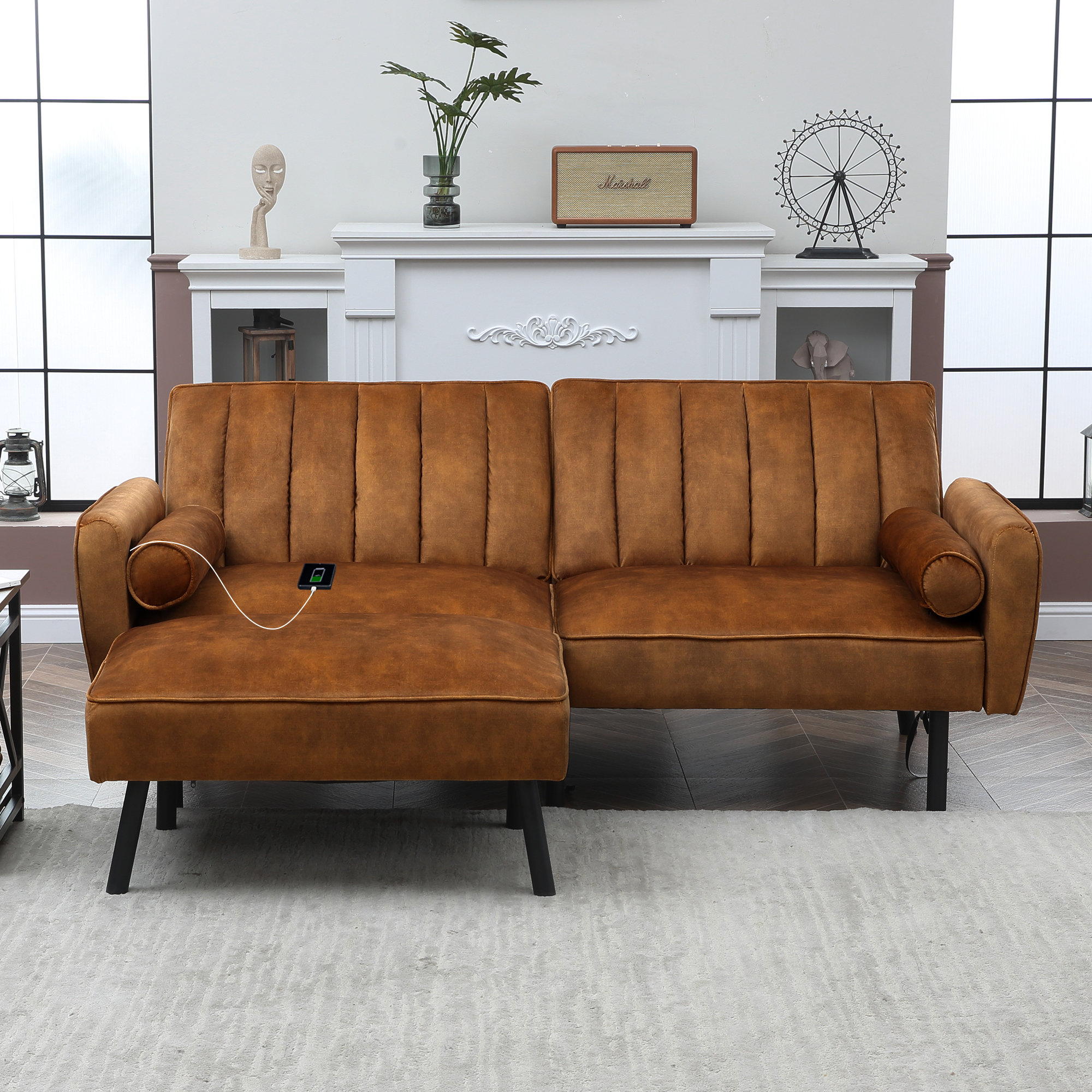 Aukfa Convertible Sleeper Sofa Chair Futon Chair Bed with USB Ports and Cup Holders for Living Room Orange Very well made.