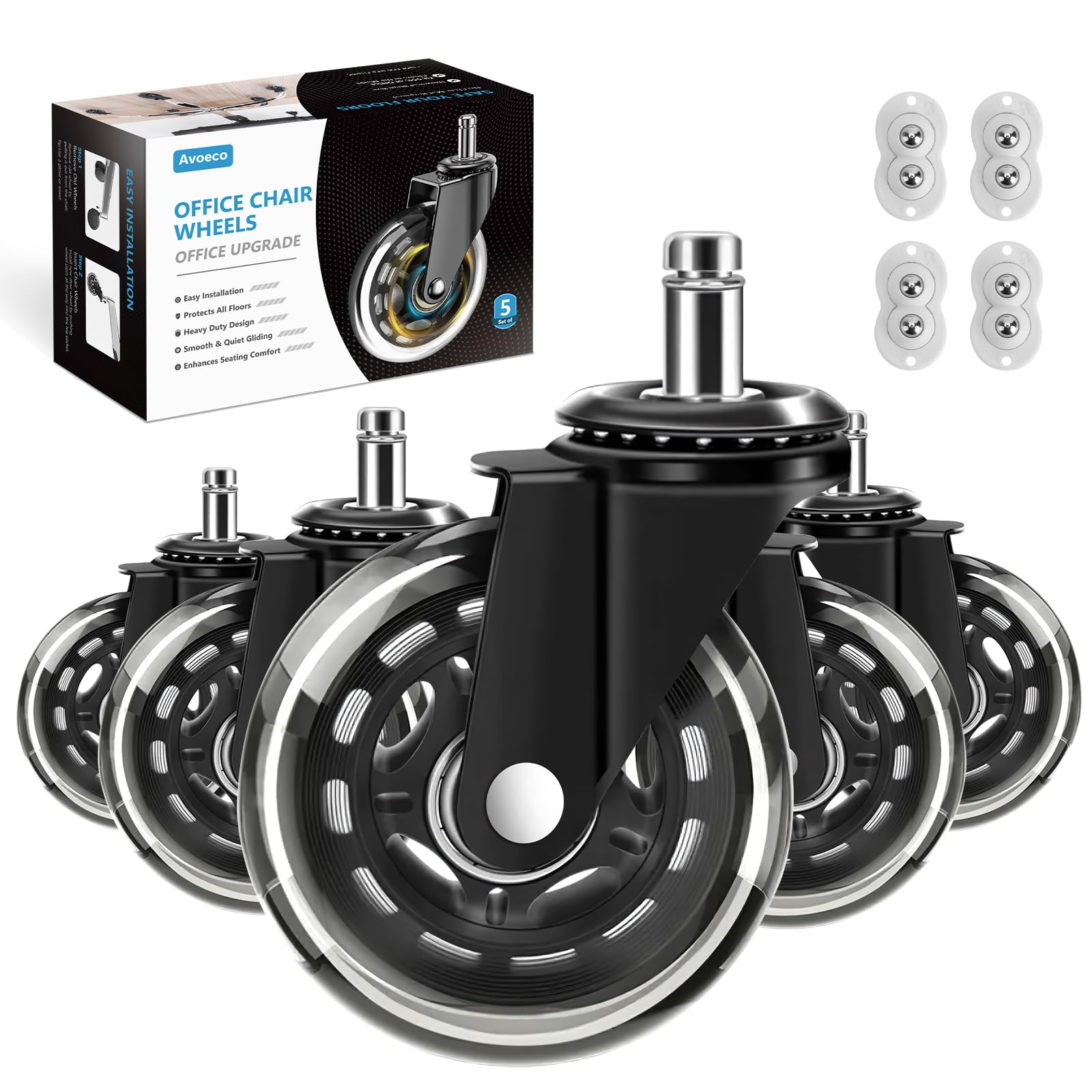 Amazon Office Chair Wheels Replacement Rubber Chair Casters for Hardwood Floors and Carpet Set of 5 Heavy Duty Casters for Chairs to Replace Office Chair Mats Not for 1KEA Black Very well made.