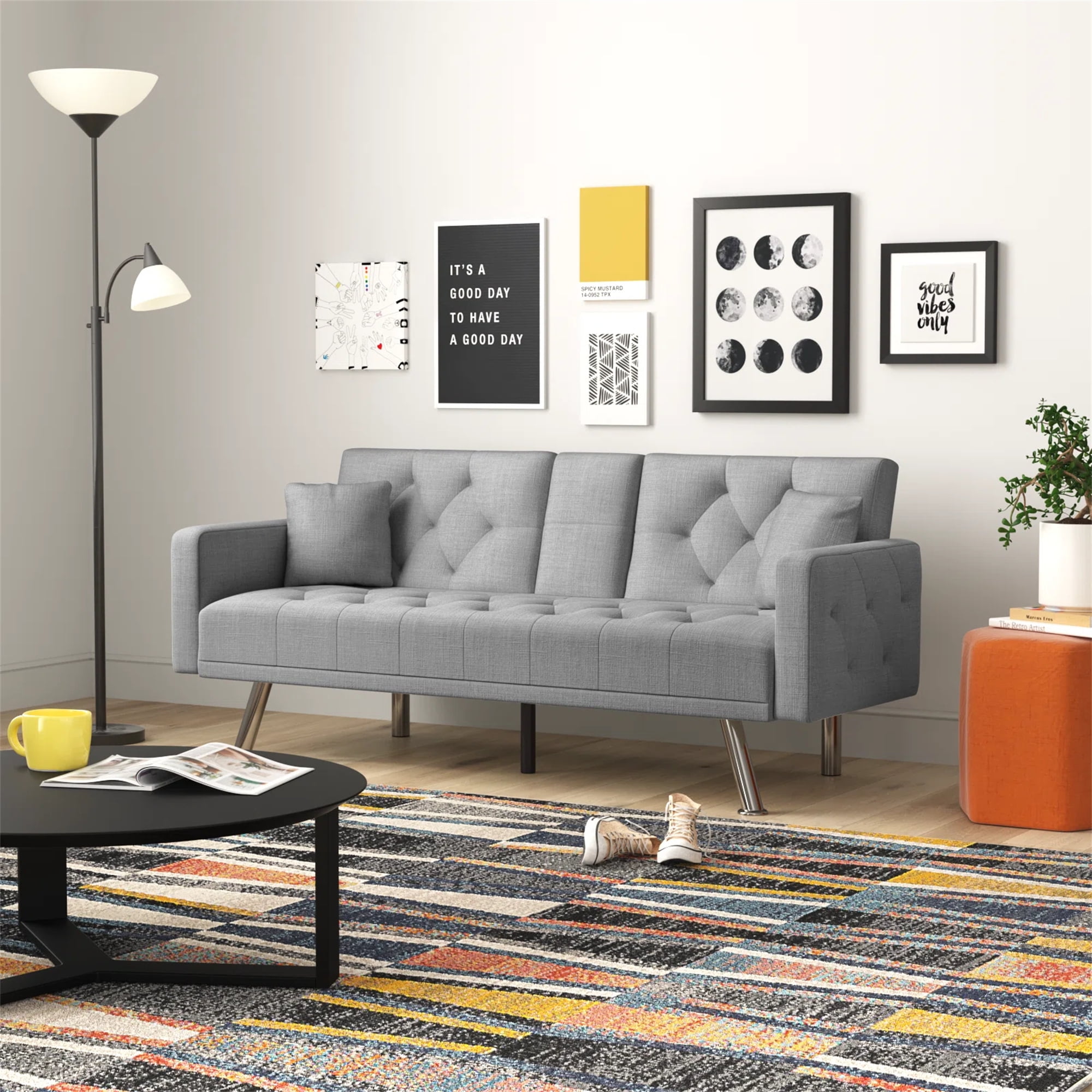 Aukfa 75 Tufted Futon Convertible Sofa Bed Arm Couch for Home Office 2 Cup Holders Pillows Gray Walmart Very well made.