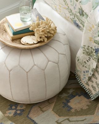 Moroccan white POUF grey Stitching Leather Unstuffed pouf Very well made.