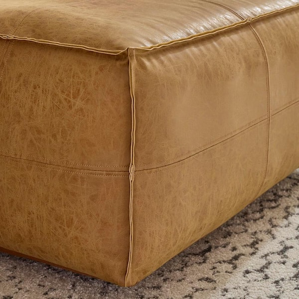 Home Decorators Collection Vegan Leather Oversized Sienna Brown Rectangular Pouf Ottoman Bench AXCPFHD 002 Very well made.