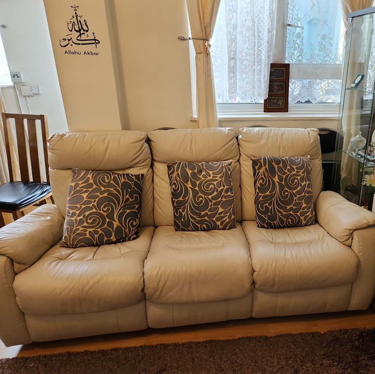 DFS beige cream Sofa Suite Set Leather Recliner 3 2 1 Sofas Very well made.