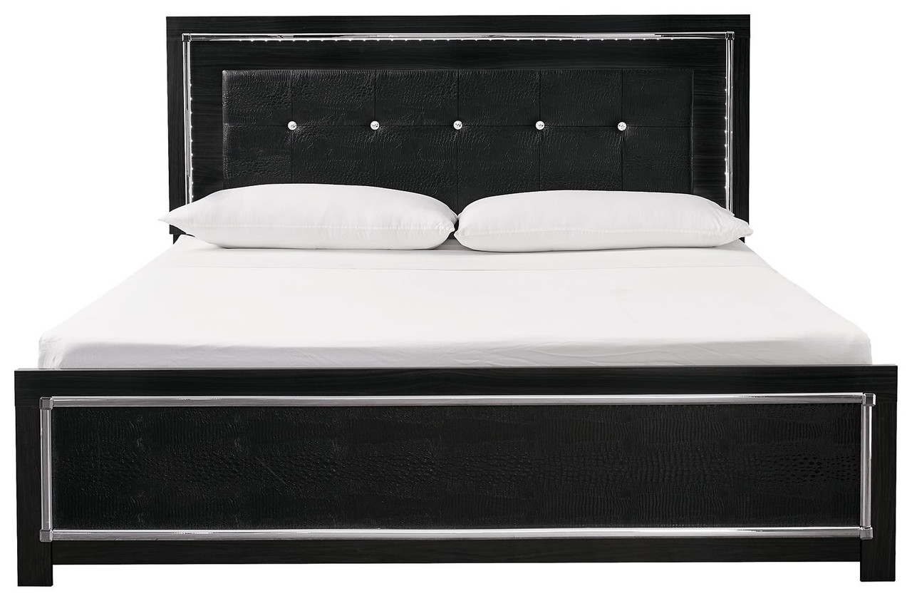 Kaydell Black King Upholstered Panel Bed Roll Slats sold at Hilton Furniture serving Houston TX ands surrounding areas Very well made.