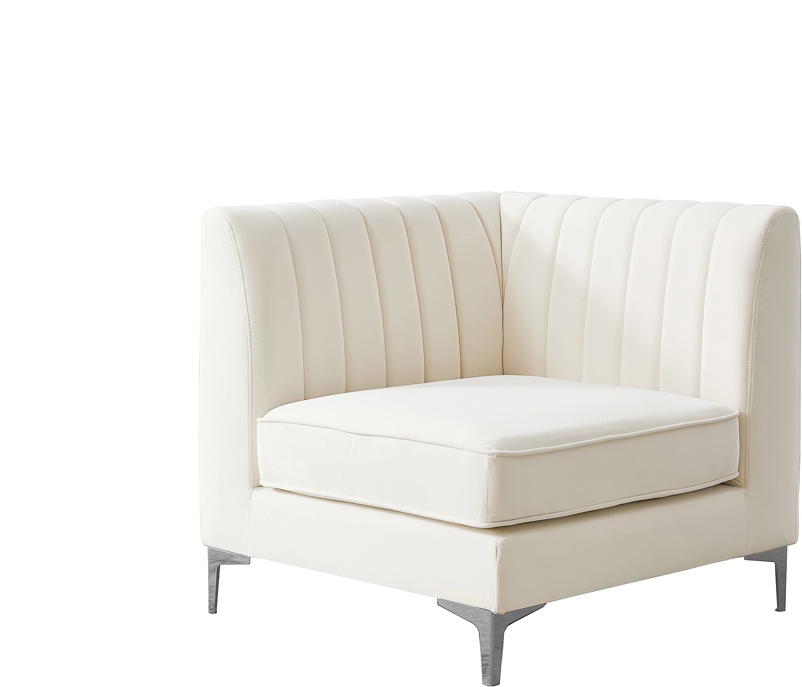 Amazon Meridian Furniture 604Cream Corner Alina Collection Modern Contemporary Velvet Upholstered Modular Chair with Deep Channel Tufting 32.5 W x 32.5 D x 31 H Cream Home Kitchen Very well made.