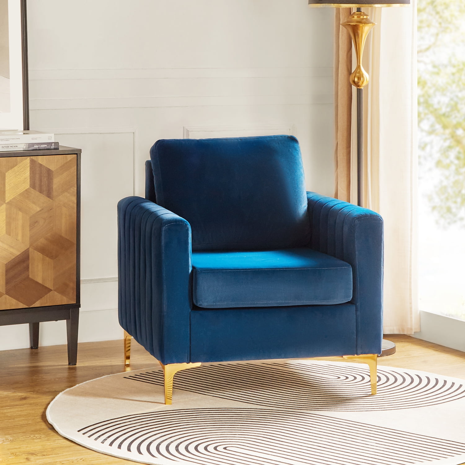 Velvet Upholstered Club Accent Chair Lounge Armchair Single Sofa Removable Backrest Golden Legs Home Living Room Bedroom Blue Very well made.