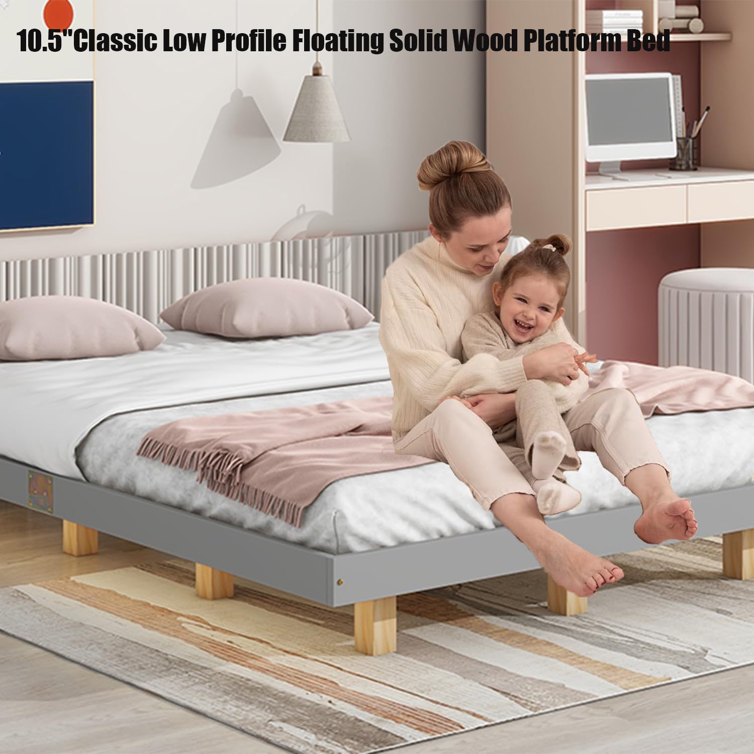 10.5 Classic Low Profile Floating Solid Wood Platform Bed Floor Bed Frame With Led Ambient Lighting Japanese Style Design Without Headboard Easy Assembly No Box Springs Required Grey Queen Home Kitche... Very well made.