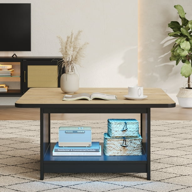 Bestier 35 Inch Square Rattan Coffee Table Mid Century Modern Coffee Table with LED Lights Large Storage for Living Room Walmart Business Supplies Very well made.