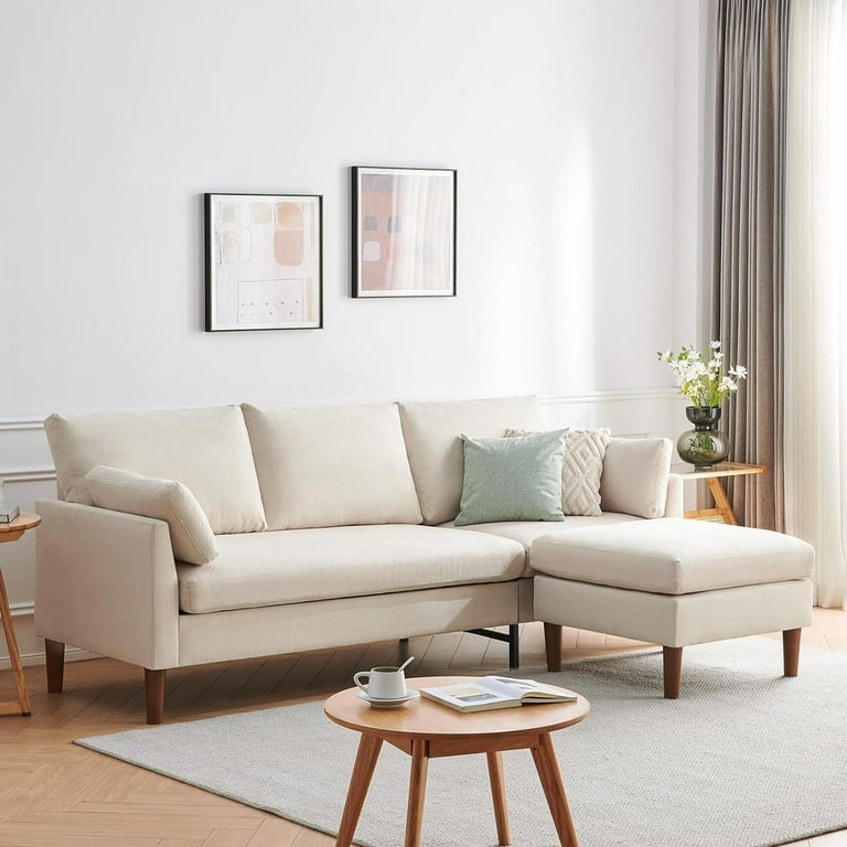 Mjkone Convertible Sectional Sofa Couch 90 W 3 Seat L Shaped Sofa Couch with Storage Ottoman Wooden Legs Modern Linen Fabric Reversible Chaise Very well made.