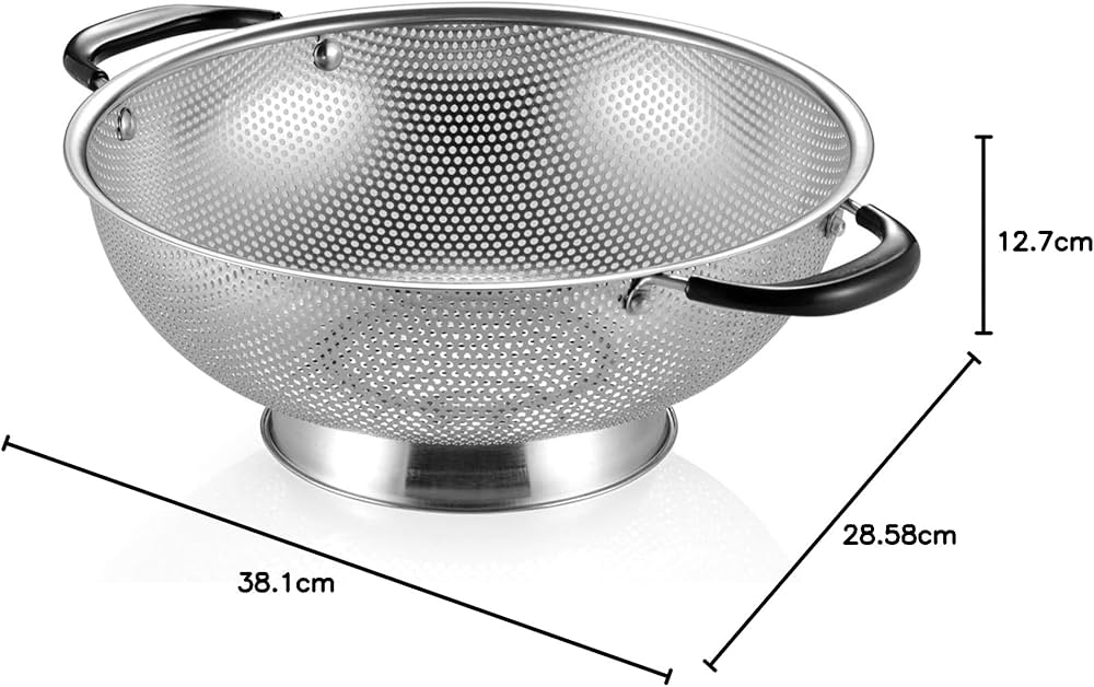 18 8 Stainless Steel Colander Easy Grip Micro perforated 5 Quart Colander Strainer with Riveted and Heat Resistant Handles BPA free LFGB Approved. Very well made.