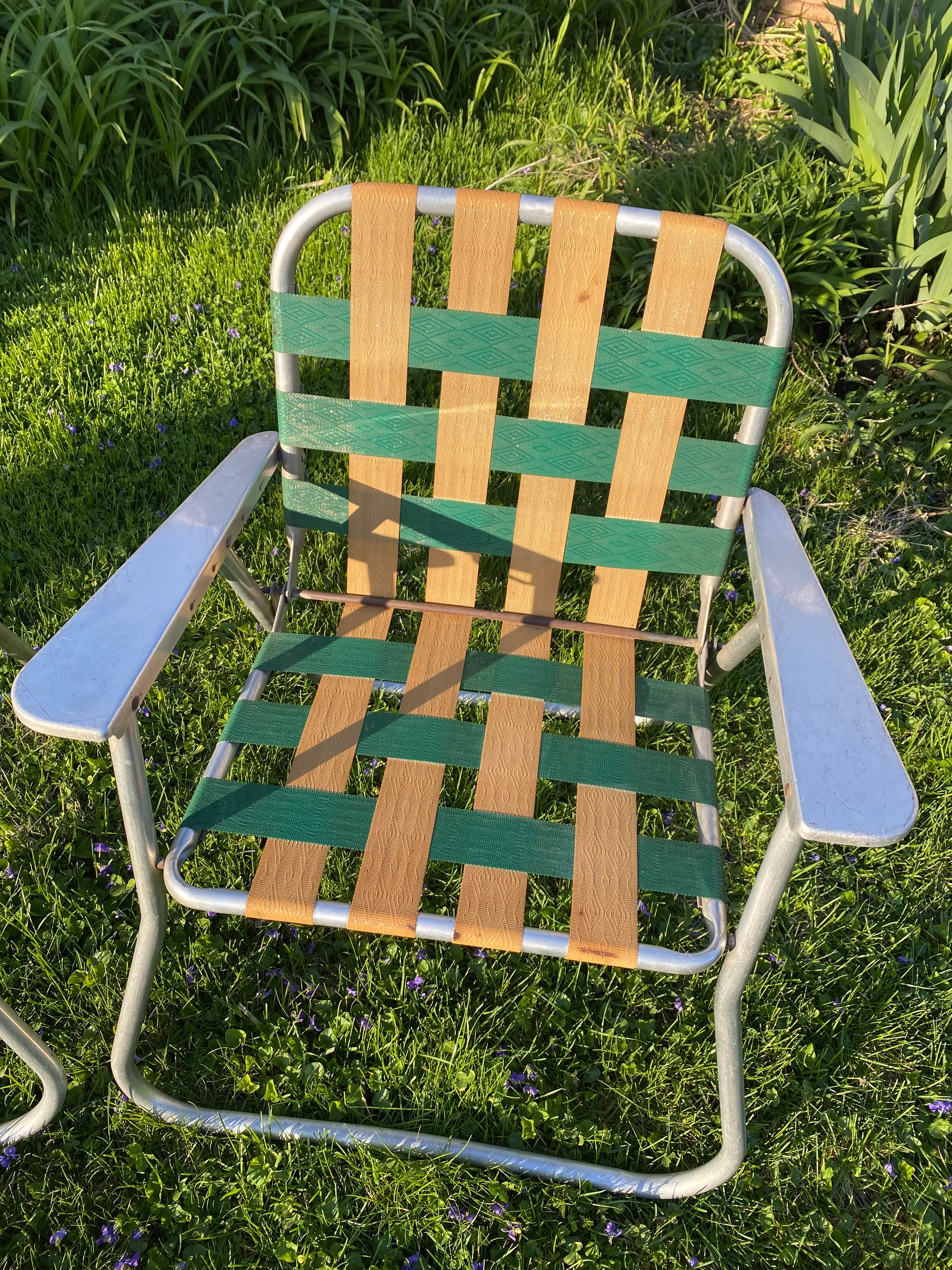 Best lawn chairs are from Lawn Chair USA Nylon webbing not the nasty vinyl of the past and aluminum frame doesn t rust like steel comfortable supportive USA made. Will never buy those junk Very well made.