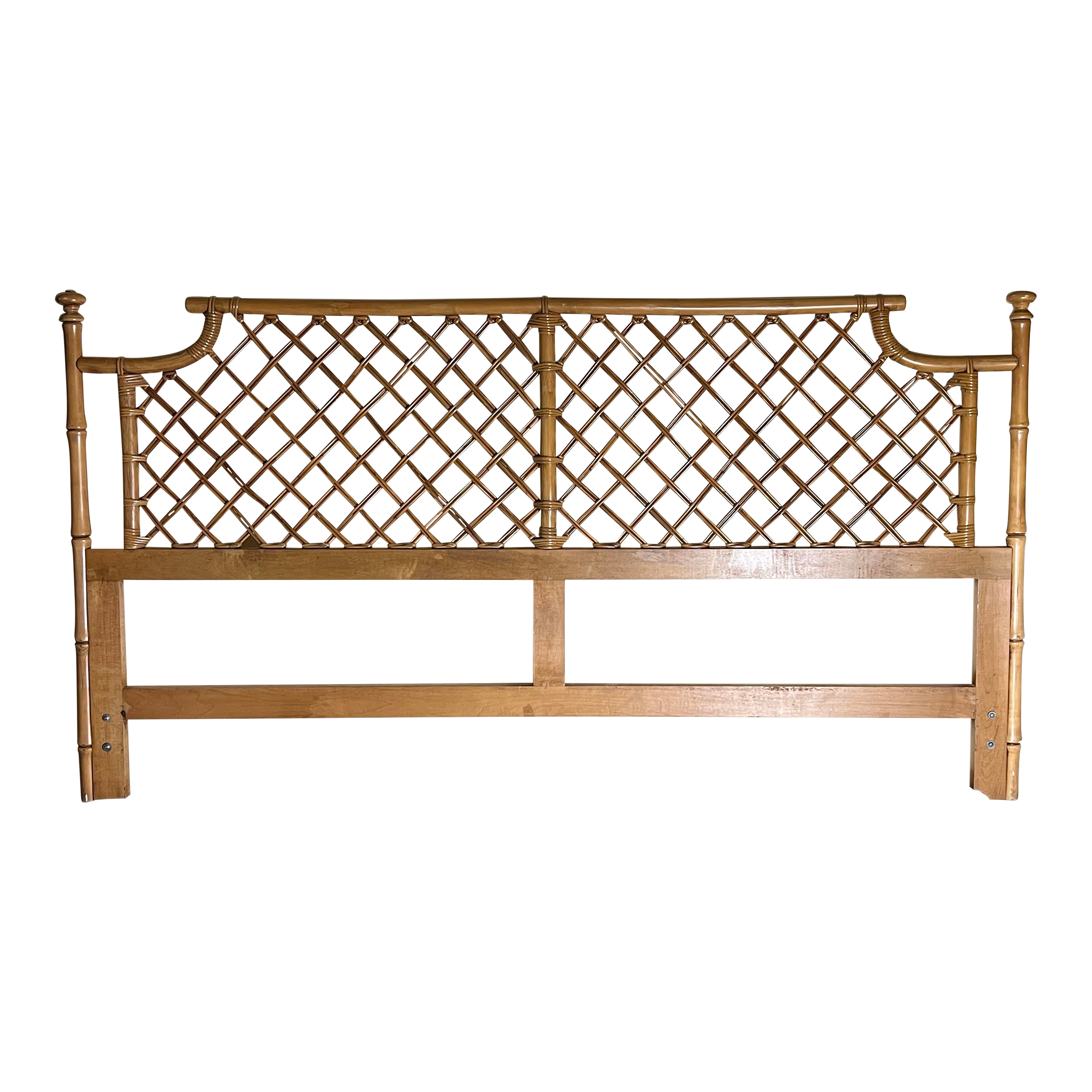 Vintage Peacock Bamboo Rattan Wicker Single Headboard Mid Century Tiki Boho Bedroom Vinterior Very well made.