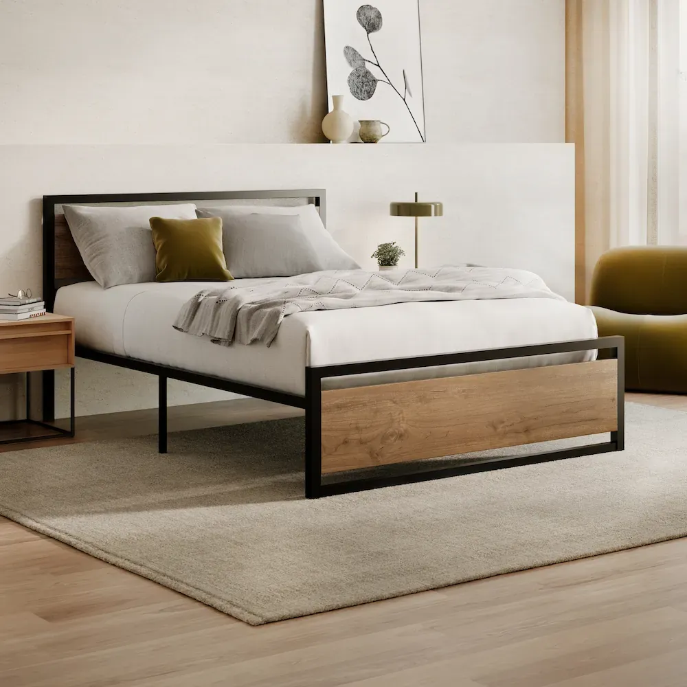 Heavy Duty Platform Bed Metal Bed Frame with Modern Wooden Headboard Very well made.