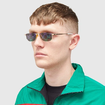 New sunglasses GUCCI narrow rectangular metal GG0627S rainbow logo Very well made.