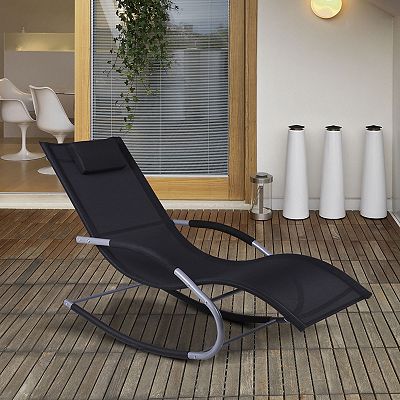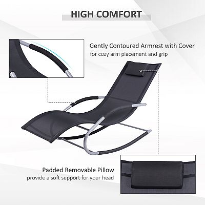 Outsunny Zero Gravity Chaise Rocker Patio Lounge Chairs with Recliner w Detachable Pillow Weather Fighting Fabric Black Very well made.