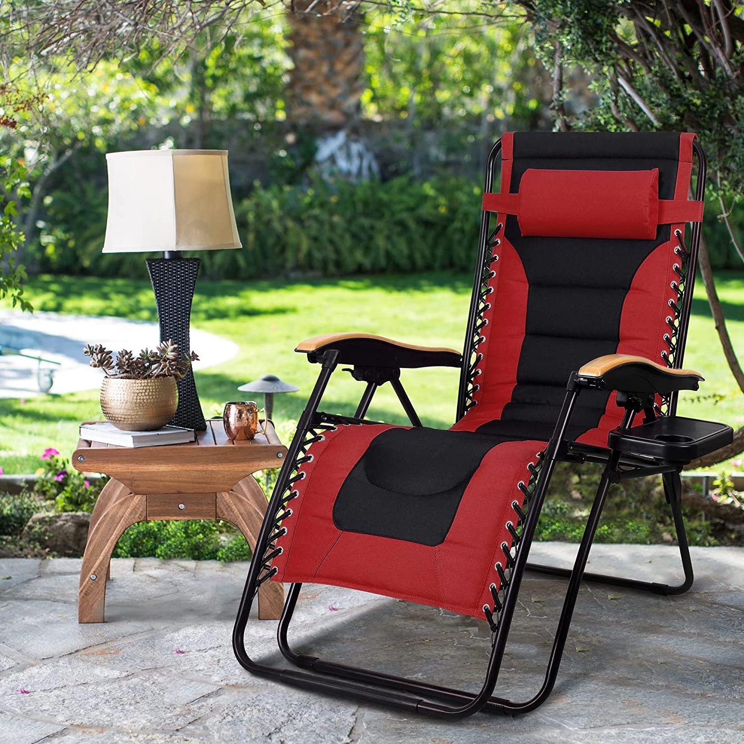 Oversize XL Padded Zero Gravity Lawn Chair Anti Gravity Lounge Chair Adjustable Recliner w Pillow Cup Holder Outdoor Camp Chai BestSuppliers Very well made.