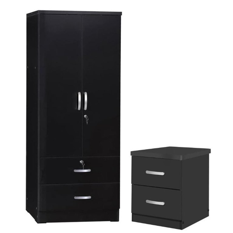 Home Square 2 Piece Set with Wardrobe Armoire and 2 Drawer Nightstand in Black Very well made.