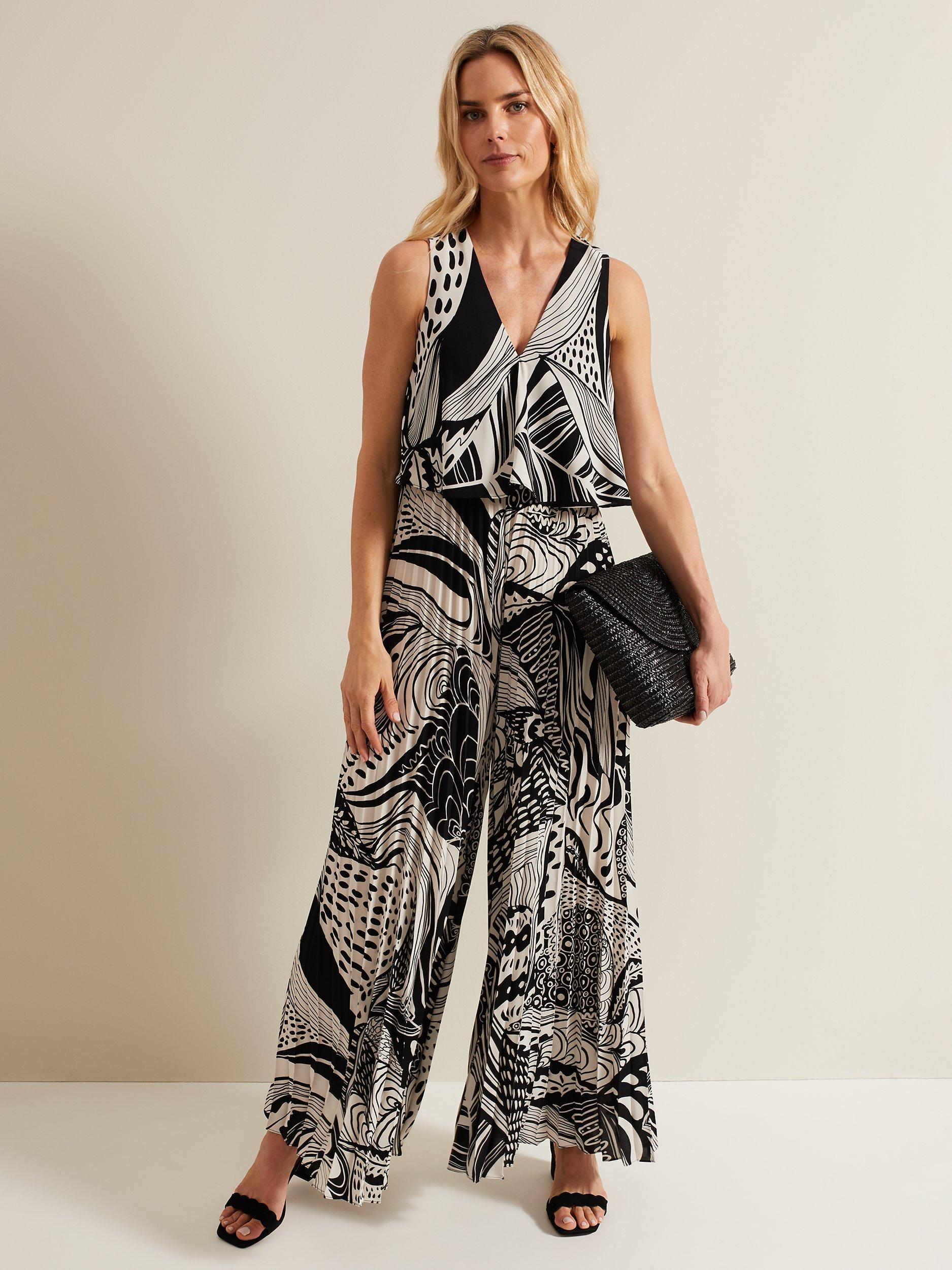 Phase Eight Saskia Pleated Wide Leg Jumpsuit Black Cream Very well made.