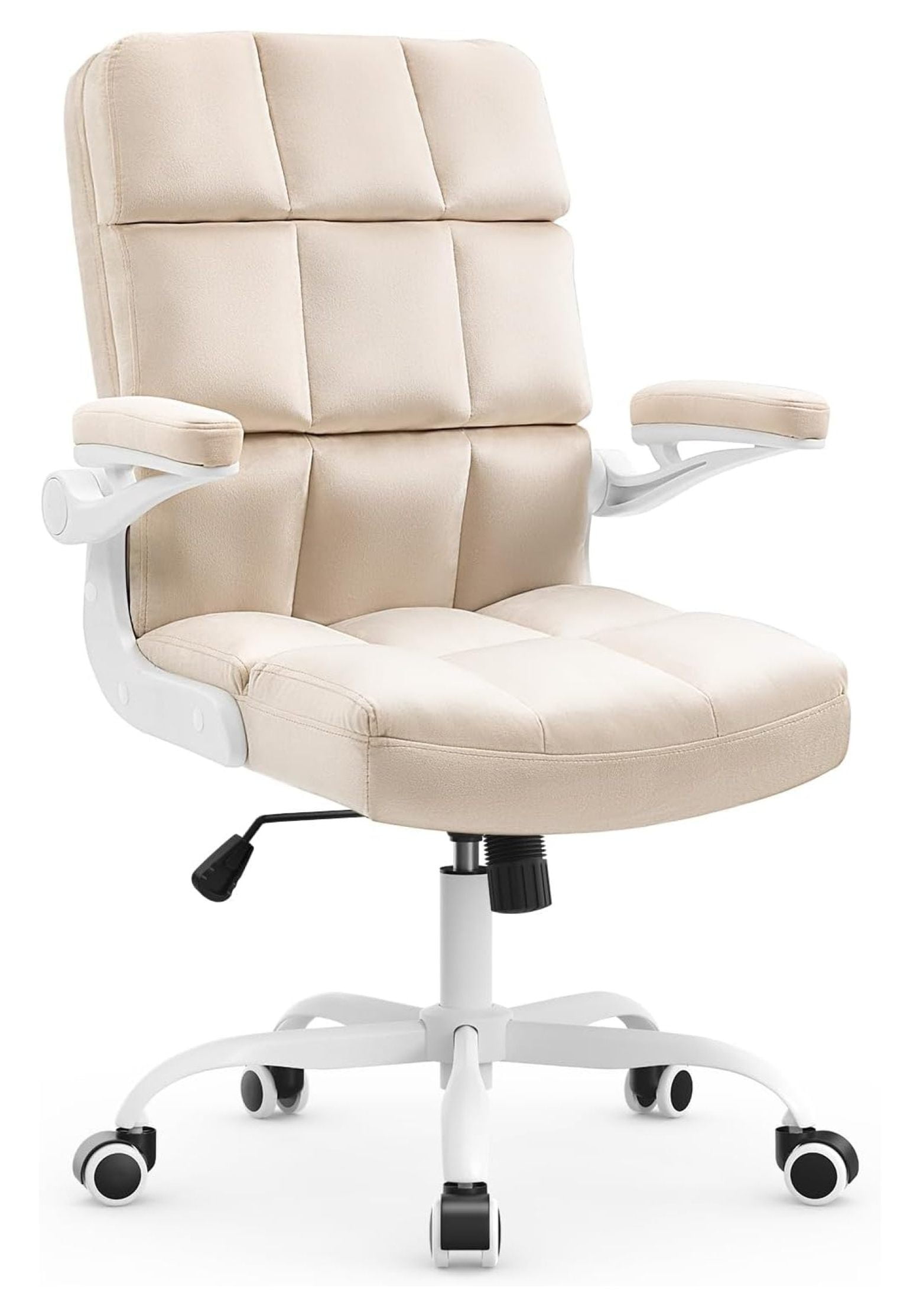 Cute White Faux Fur Desk Chair for Girls Women Comfy Fluffy Modern Home Office Chair Elegant Fuzzy Vanity Chair Makeup Arm Swivel Chair with Wooden Very well made.