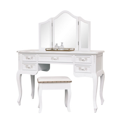 Melody Maison Antique White Dressing Table Desk with Triple Mirror and Stool Pays Blanc Range Very well made.