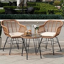 JOIVI 3 Piece Patio Bistro Set Wicker Outdoor Patio Set with Enhanced Comfort Seating Round Glass Top Coffee Side Table Patio Rattan Conversation Set for Balcony Lawn Garden Backyard Black Patio Lawn ... Very well made.