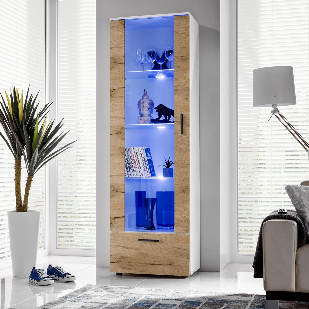 Komodee Alessandria Display Cabinet White Wotan Width 60 cm x Height 192 cm x Depth 42 cm LED Blue 3 Glass Shelves 1 Shelf Made of Laminated Very well made.