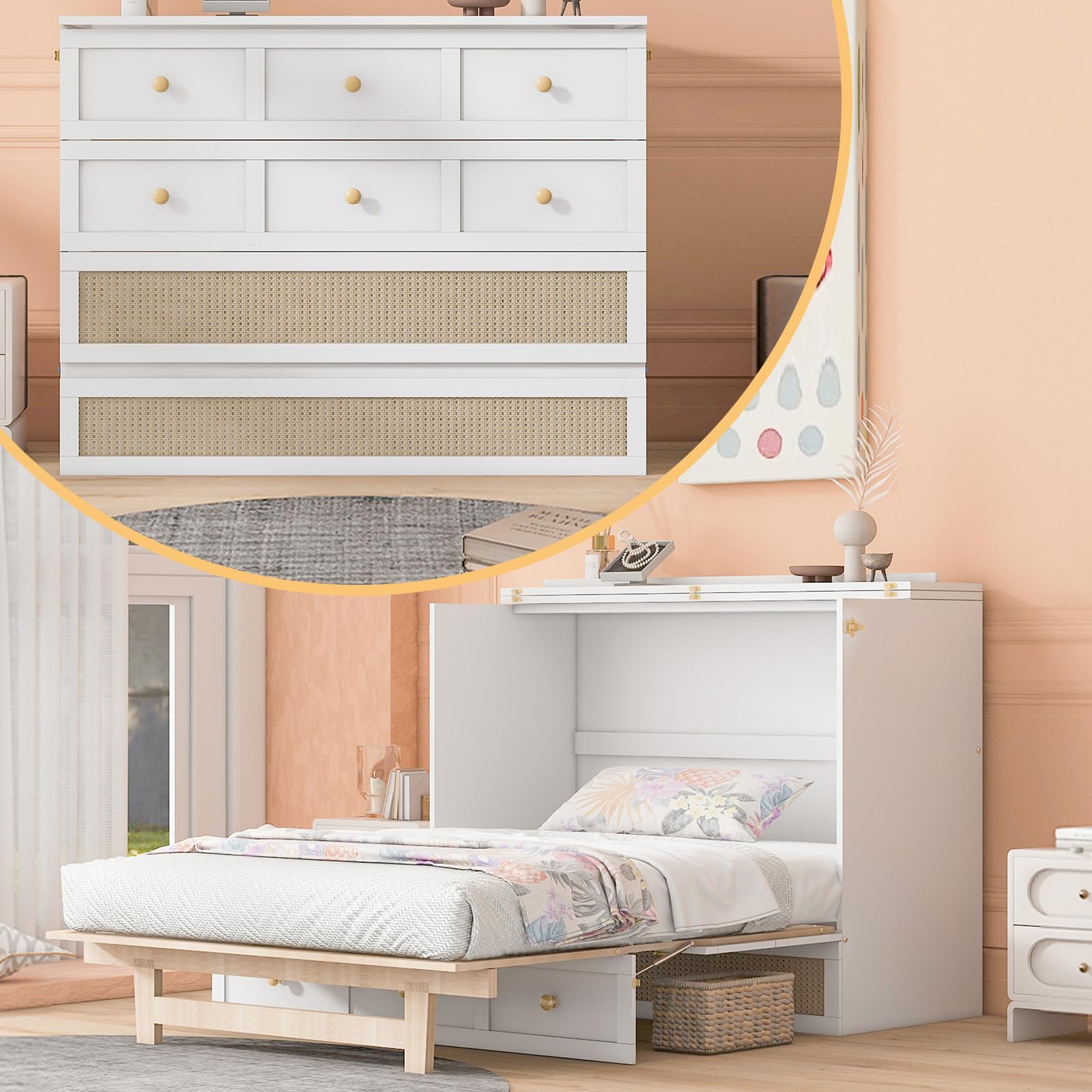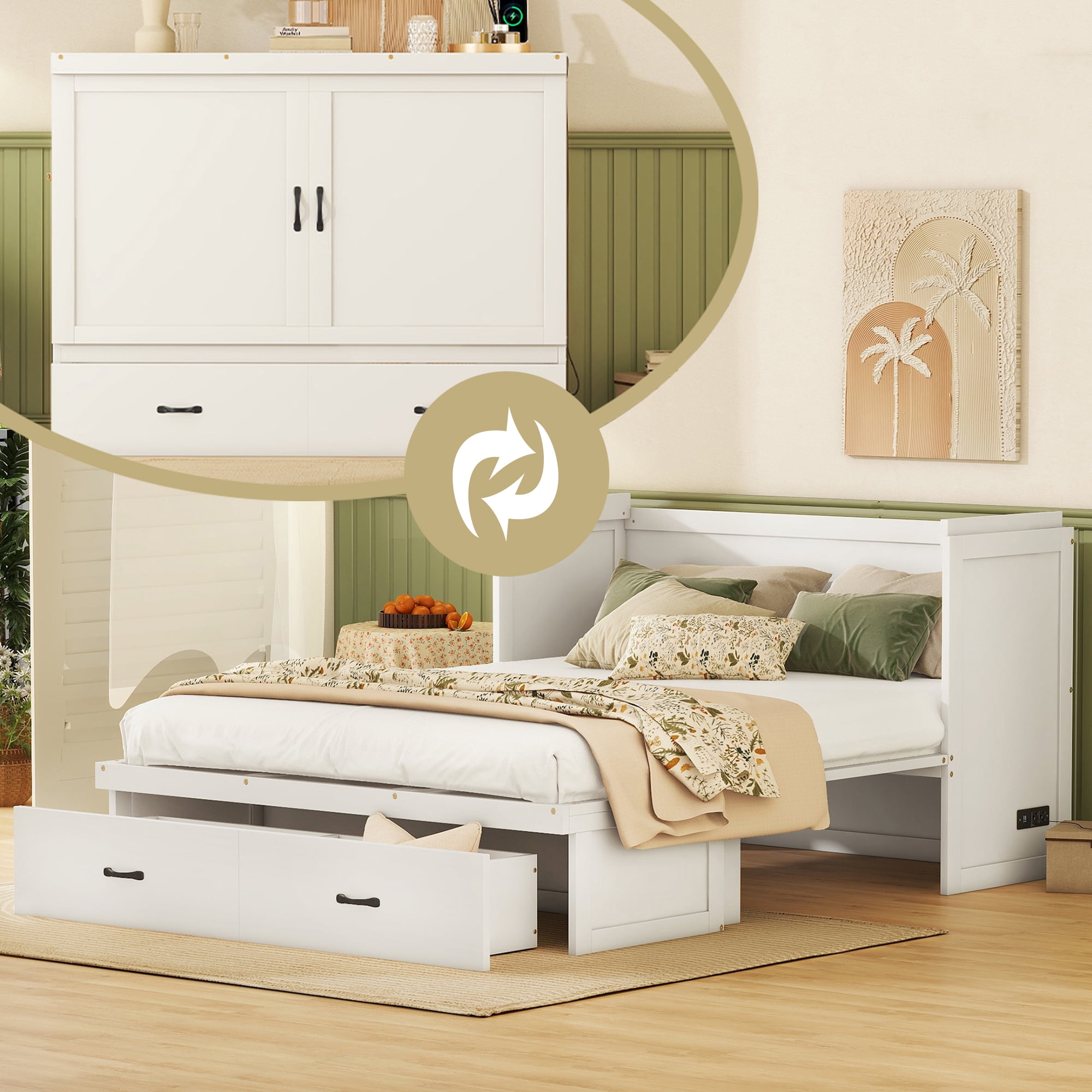 Space Saving Full Size Murphy Bed with Large Storage Drawer USB Charging Ports Easy Roller Pulley Design for Multi Use Rooms Very well made.