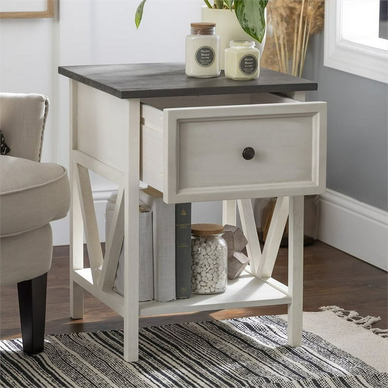 Farmhouse Bedside Pine Storage Rustic V Frame 1 Drawer End Table Set in Gray White Wash Walmart Very well made.