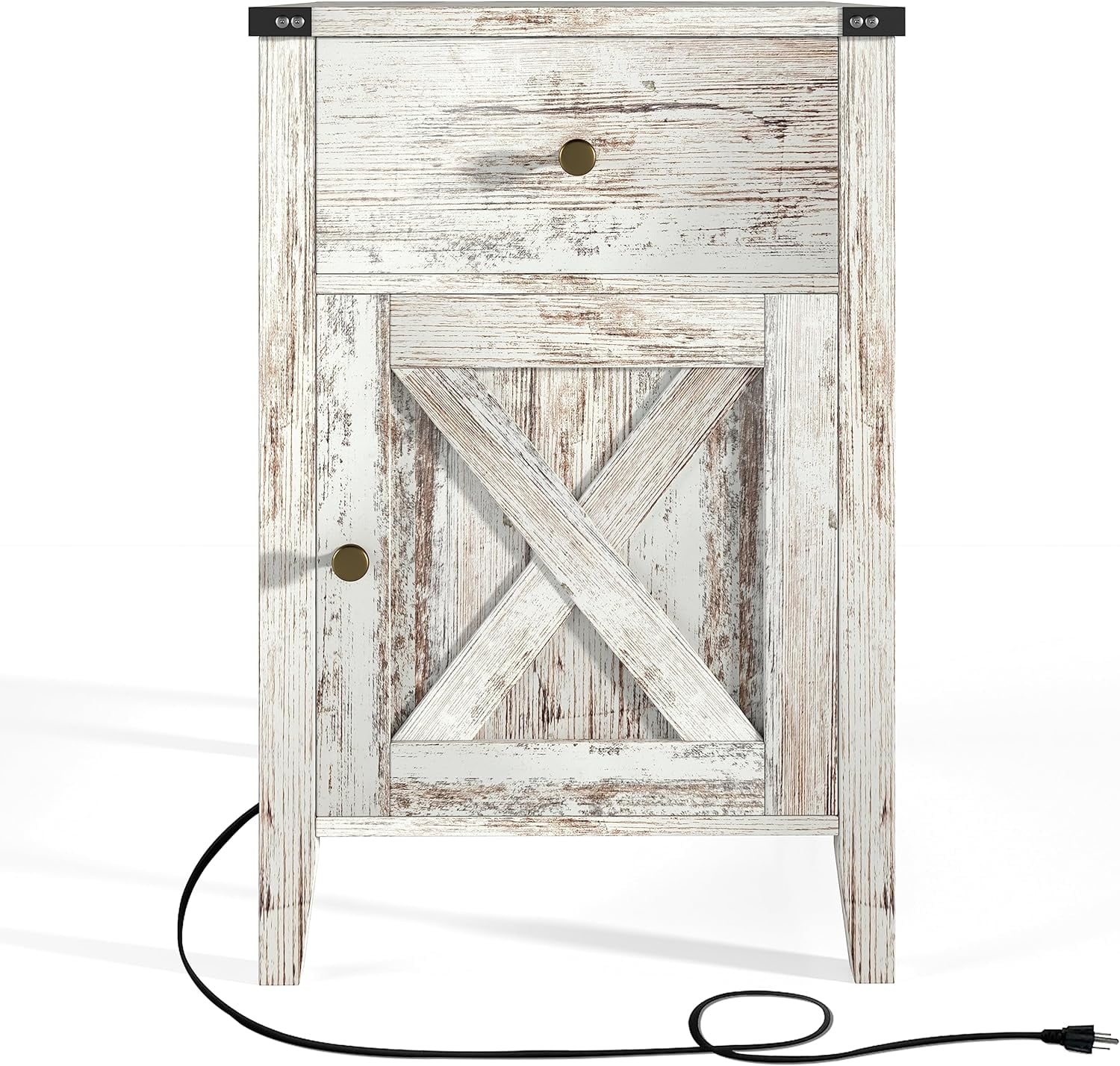 Rustic White Wash Nightstand Distressed Wood Side Table with USB Charging Station Perfect for Bedroom Living Room Barnwood and Farmhouse Style Walmart Very well made.