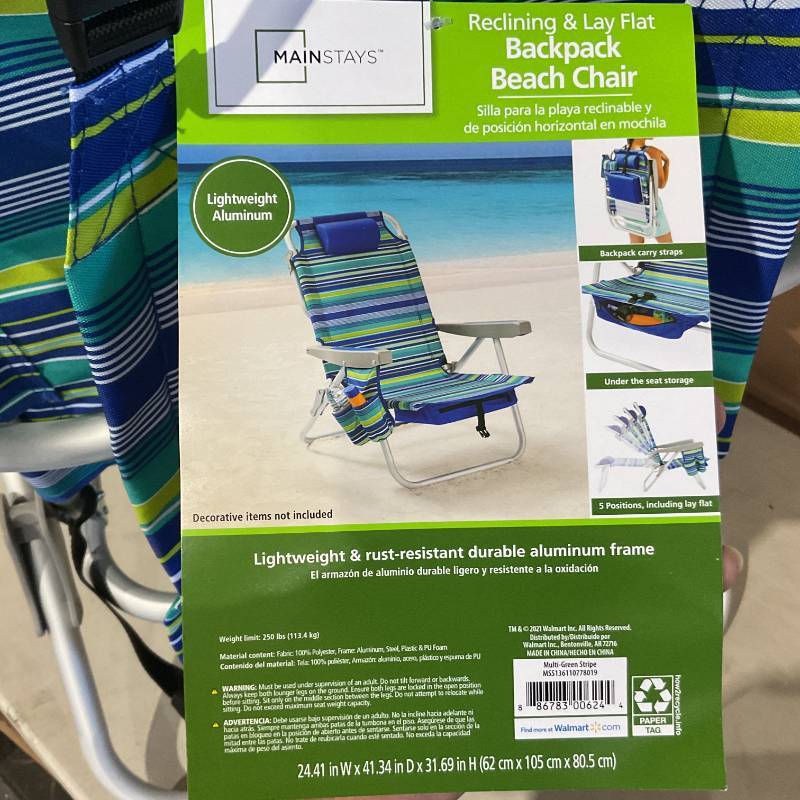 Mainstays Reclining Lay Flat Backpack Beach Chair Blue Walmart Very well made.