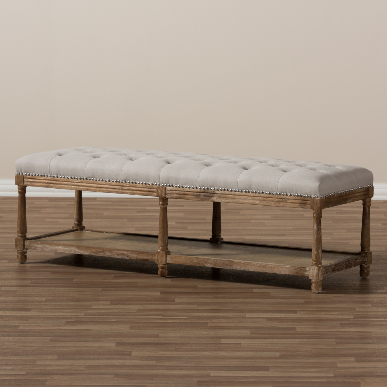 Baxton Studio Celeste French Country Weathered Oak Beige Linen Upholstered Ottoman Bench DealBeds Very well made.