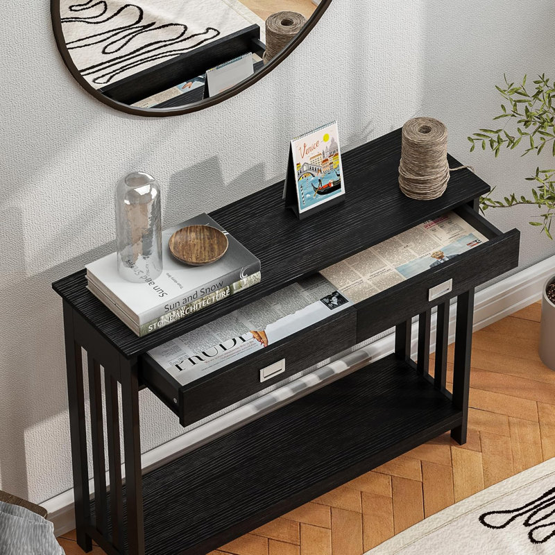 Lark Manor Black Entryway Table With Drawer Narrow Console Table Sofa Table With Storage Shelf For Entryway Living Room And Hallway Wayfair Very well made.